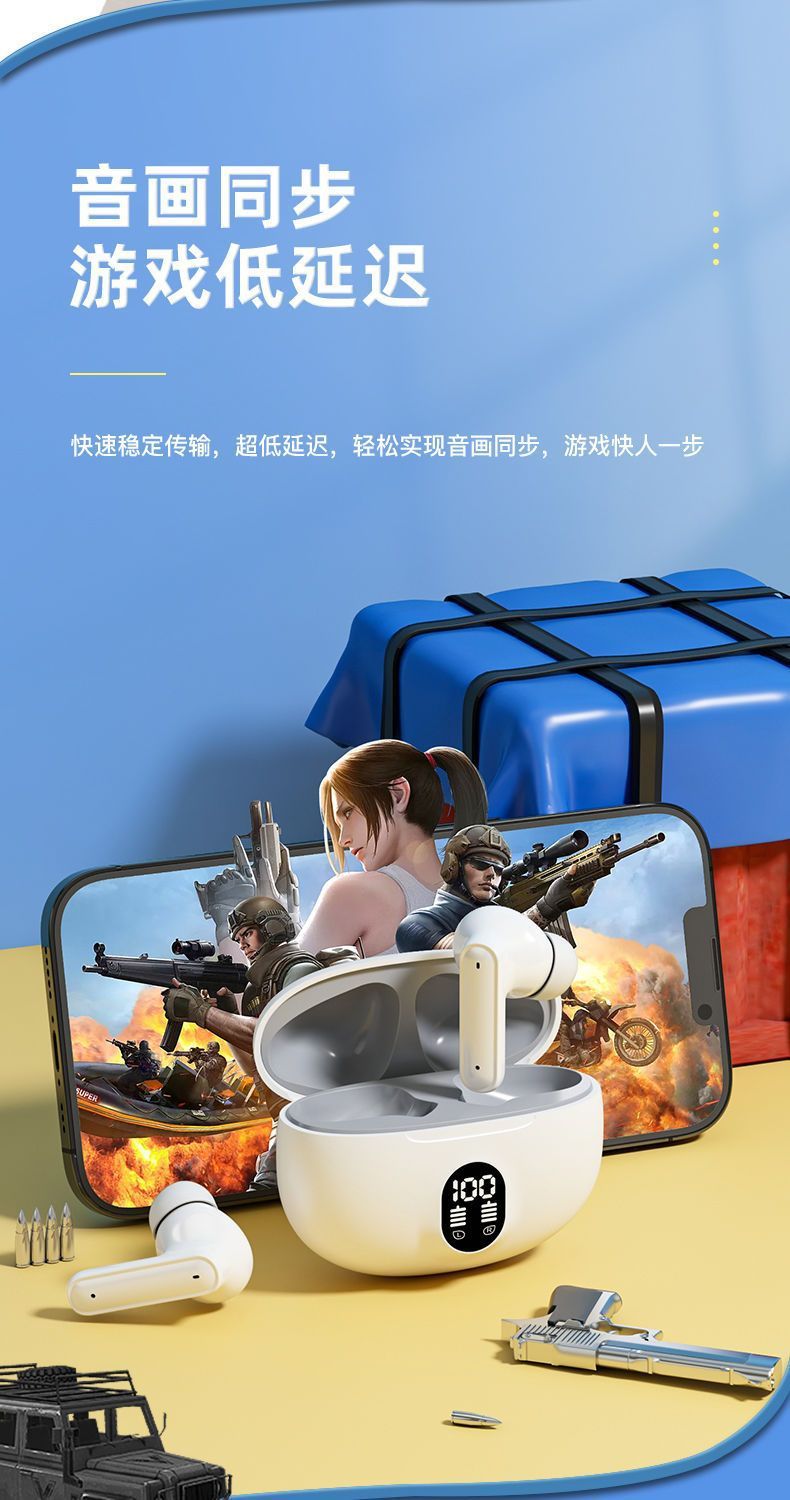 帶有數字顯示的無線耳機藍牙耳機,高質量,低延遲遊戲耳機