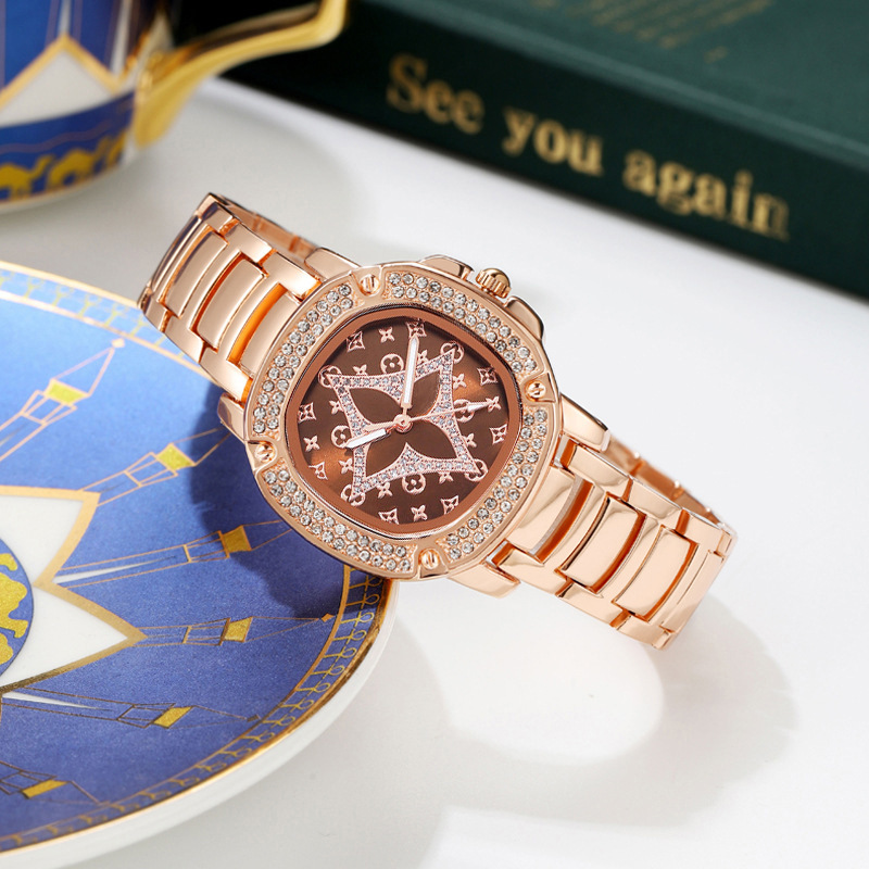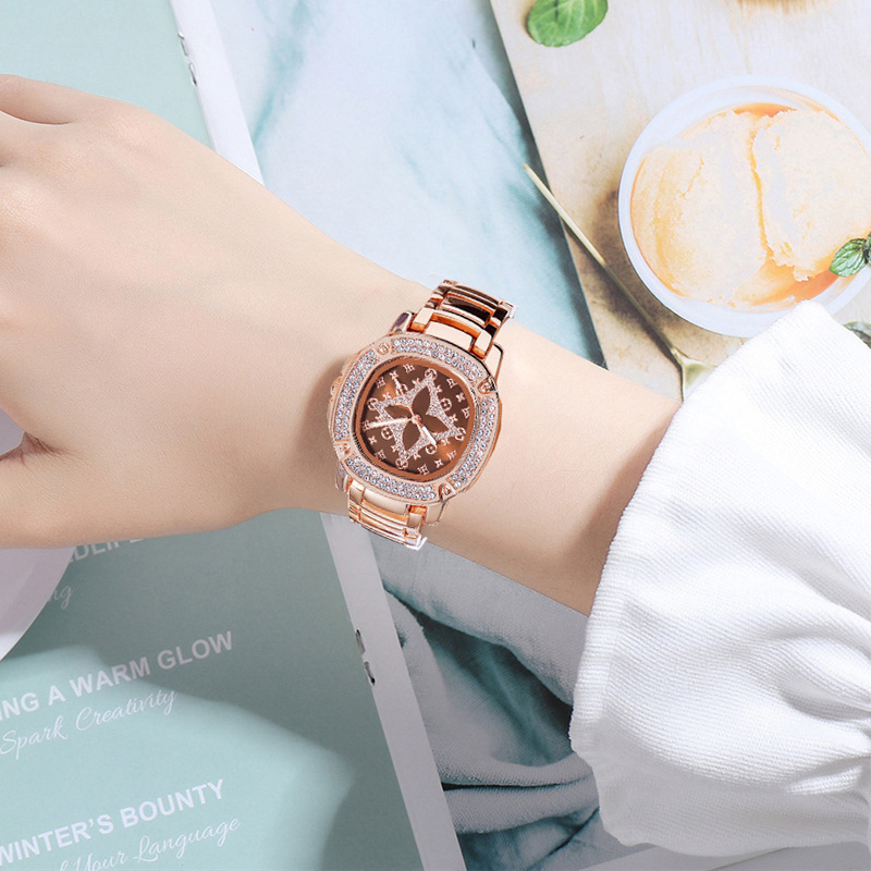 女士簡單的鑽石手錶,圓形錶盤手錶,時尚而優雅的手錶