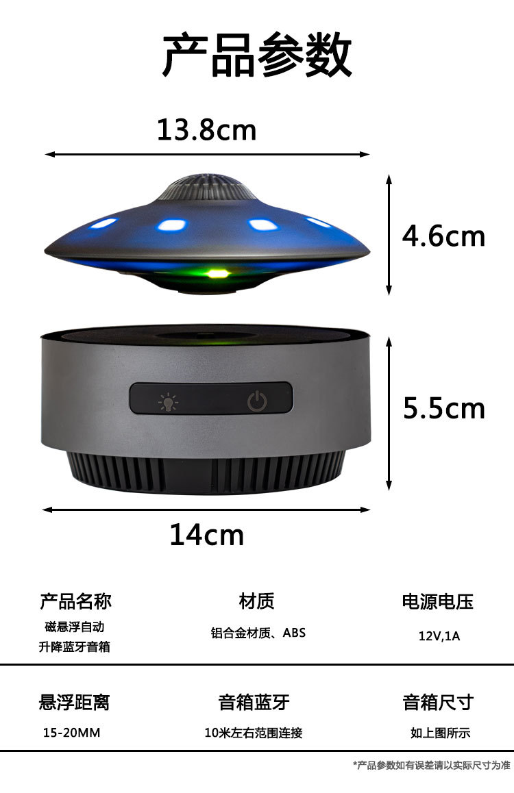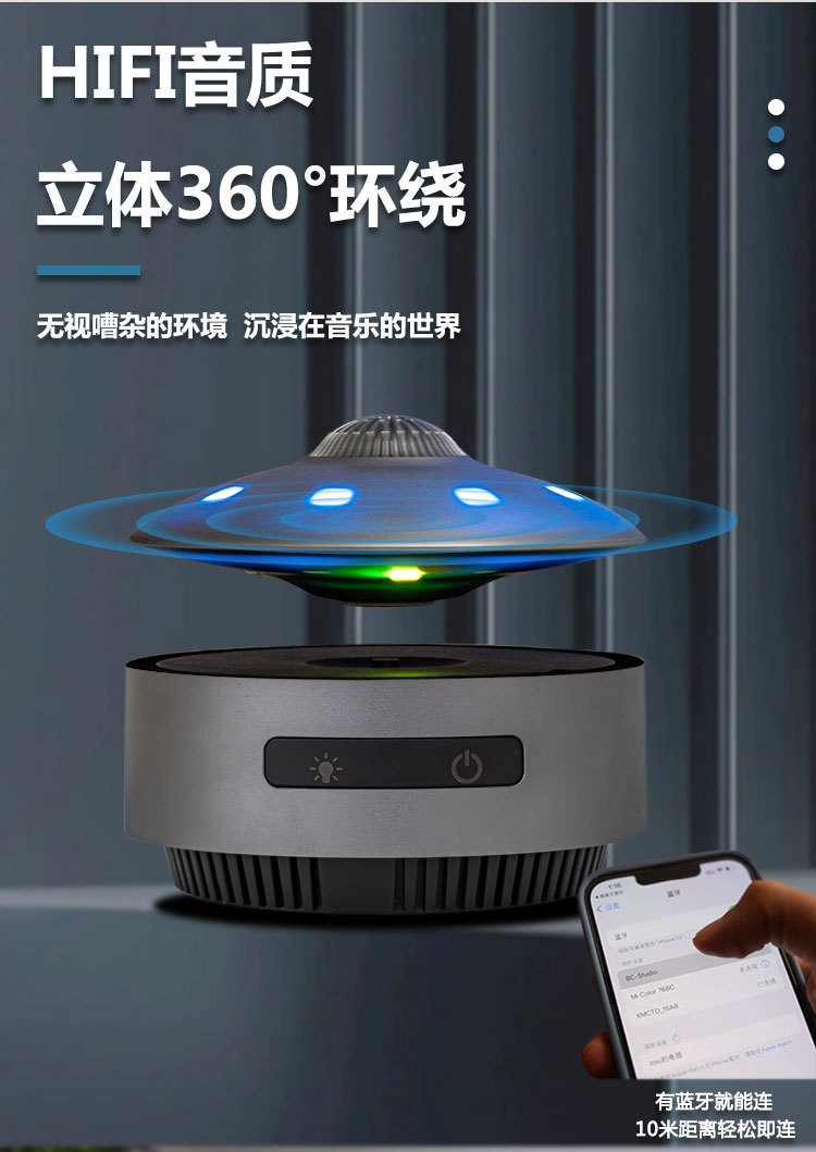 磁懸浮揚聲器UFO藍牙黑色技術揚聲器桌面裝飾揚聲器